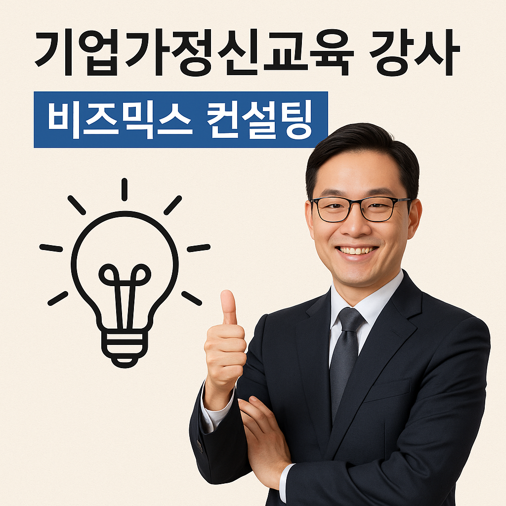 기업가정신교육 강사비즈믹스 컨설팅혼탁한 비즈니스 환경, 성장의 본질을 찾다진정한 경쟁력은 무엇일까요? 기업가정신(Entrepreneurship)입니다.단순 창업이 아니라, 지속가능한 성장과 실천의 엔진이 바로 기업가정신입니다.비즈믹스 컨설팅은 기업가정신교육 전문강사로서 여러분의 비즈니스 DNA를 바꿔드립니다. 왜 지금, 기업가정신교육이 중요한가?2025년의 시장 변화는 그 어느 때보다 빠릅니다.대부분의 사업자와 리더들이 ‘어떻게 생각하고 실행해야 할지’ 막막함을 토로합니다.진짜 변화는, 사고방식의 전환에서 출발합니다. 비즈믹스의 교육은 위기 돌파와 기회 포착의 체계적 프레임을 심어드립니다.비즈믹스만의 차별화된 접근법1. 실전 중심 맞춤형 교육업종과 성장 단계에 따라 현장에서 바로 적용 가능한 전략만 전..