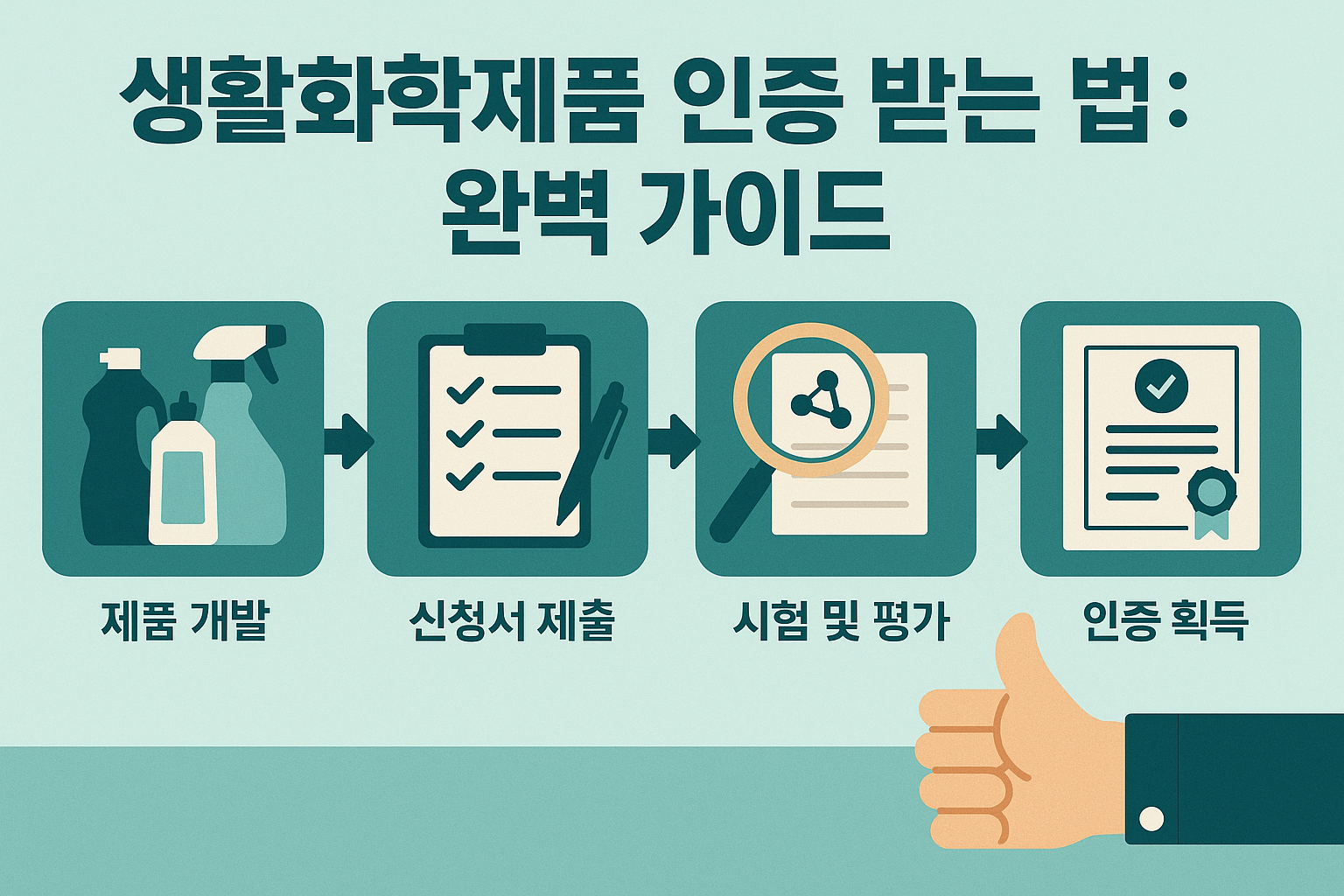 생활화학제품 인증 : 완벽 가이드우리 삶의 안전을 위한 필수 과정, 생활화학제품 인증 절차를 한눈에 알아봅니다.1. 생활화학제품 인증이란?우리가 매일 사용하는 세제, 방향제, 접착제 등 생활 속 화학제품이 안전한지 확인하는 제도입니다.2019년부터 시행된 「화학제품안전법」에 따라, 이런 제품을 제조·수입·판매하려면 반드시 안전기준 적합확인과 신고를 해야 합니다.👉 쉽게 말해, "이 제품이 인체와 환경에 안전하다"는 국가 보증을 받는 과정이에요.2. 인증이 꼭 필요한 이유✅ 소비자 안전: 유해 화학물질로 인한 사고를 예방합니다.✅ 법적 의무: 인증 없이는 불법 제조·판매로 처벌받을 수 있습니다.✅ 시장 진입 조건: 대형 마트나 온라인몰 입점의 필수 조건입니다.✅ 신뢰 확보: 인증 마크가 곧 제품의 품질과..